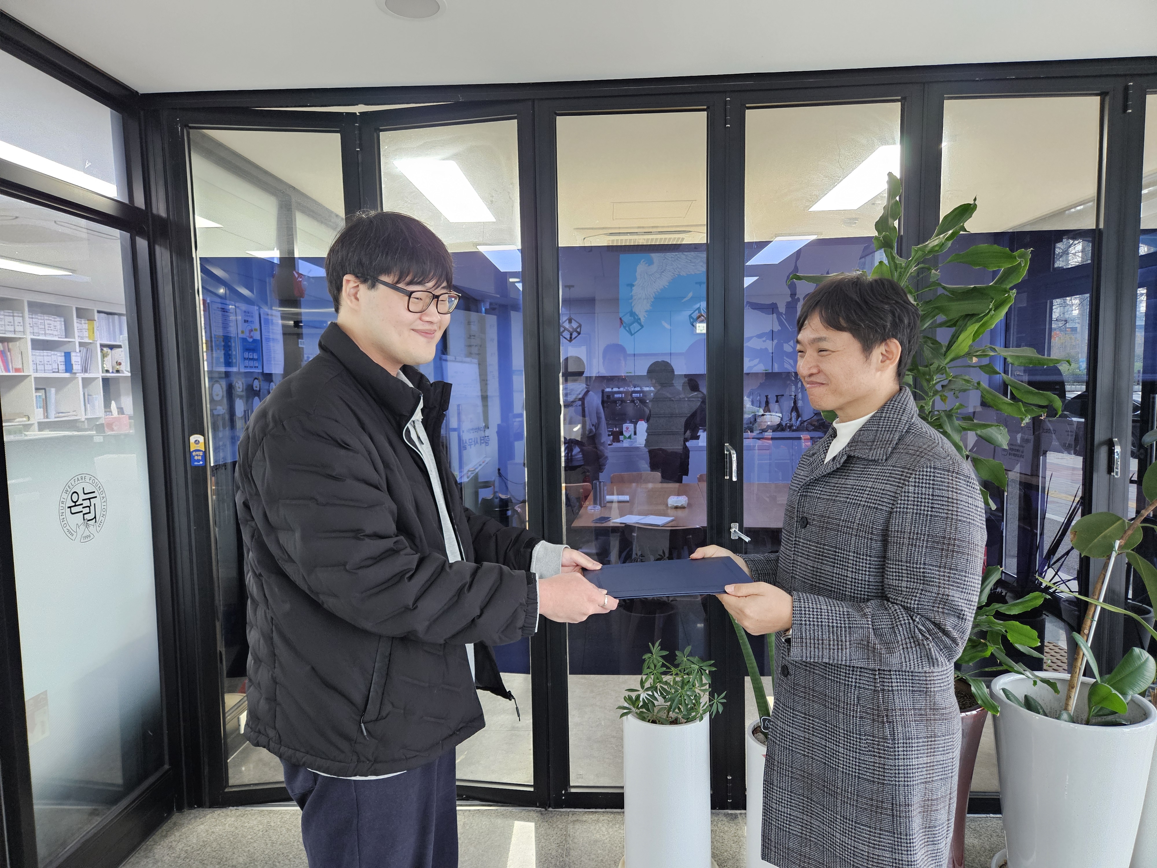 군포남자중장기청소년쉼터(하나로)에서는 2025년 11월 24일, 사회복무요원 이*문에게 시설장 표창장을 수여하였습니다.